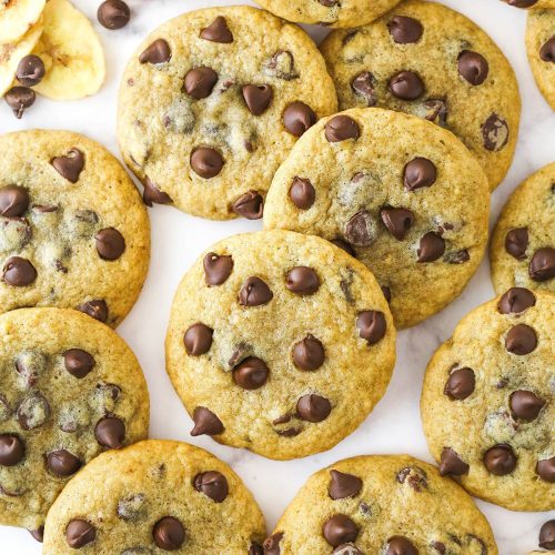The beauty of these banana chocolate chip cookies lies in their straightforward approach. You’ll basically mash your bananas, cream your butter and sugars, whisk in the wet ingredients, then gently combine with the dry. The chocolate chips get folded in last, and then it’s just a matter of scooping and baking. No chilling required, no complicated steps. It’s designed to be easy, fast, and deliver maximum deliciousness with minimal fuss. You get warm, gooey cookies in under 30 minutes from start to finish, which is pretty amazing if you ask me!