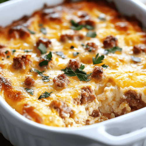 I’ve made this biscuits and gravy casserole more times than I can count, and over the years, I’ve picked up a few tricks that I think really make a difference. Let’s talk about getting it just right. First, biscuit batter consistency is key. It should be shaggy and a little sticky, not like a stiff bread dough. If it’s too dry, your biscuits will be tough. Too wet, and they might get gummy. I find that the flour amount can vary slightly depending on humidity, so add milk gradually until it just comes together. Don’t be tempted to overmix; a few lumps are totally fine and actually desirable for tender biscuits. For the gravy, the trick to a smooth, lump-free sauce is to whisk in the milk slowly and keep whisking. Cooking out the flour for a minute before adding the liquid also helps prevent that raw flour taste. And don’t rush the thickening process; let it simmer gently until it reaches your desired consistency. When it comes to layering and swirling, don’t aim for perfection! Rustic charm is what we’re going for here. The swirls create beautiful pockets of gravy and biscuit, and it’s okay if some biscuit peeks through. The goal is deliciousness, not Instagram perfection (though it often looks pretty darn good!). If you’re using cheese, make sure to add some into the gravy and some on top for that ultimate cheesy pull. For ingredient swaps, I’ve experimented a lot! If you don’t have breakfast sausage, browned and crumbled pork or even turkey sausage works, though you might need to add a pinch more salt and pepper. For a vegetarian option, crumbled plant-based sausage or even sautéed mushrooms and onions can be used, though the flavor profile will change significantly. Some people even use canned biscuits to make this even quicker, and I’ve tried it! Just separate the canned biscuits and place them on top of the gravy. They might brown a little faster, so keep an eye on them. When it comes to baking, always know your oven. Ovens can vary, so the baking time is a guideline. Keep an eye on the casserole, and look for that golden-brown color and bubbling gravy. If your oven tends to bake unevenly, rotating the dish halfway through can help. And remember, the casserole will continue to set up a bit as it cools, so don’t overbake it trying to get it super firm. Lastly, for glaze variations, while melted butter is classic, a light brush of honey or maple syrup on top just before serving can add a lovely sweet counterpoint to the savory gravy. You could even add a pinch of paprika to the melted butter for a little color. These little tweaks really elevate this dish from good to absolutely unforgettable!