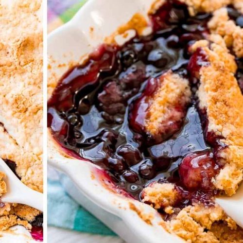 Place the baking dish into your preheated oven. Bake for about 40-50 minutes, or until the topping is golden brown and the blueberry filling is bubbling around the edges. You can test for doneness by gently poking the topping with a toothpick; it should come out mostly clean. The bubbling filling is a great indicator that it’s ready.