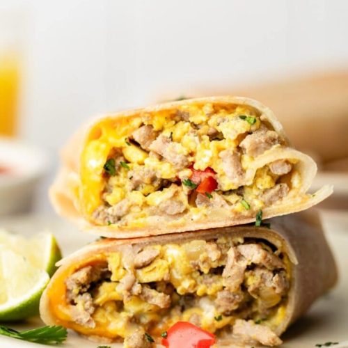 Spice It Up: If you like a little heat, add some diced jalapeños to your filling or top your burritos with hot sauce. You can also use a spicy sausage or pepper jack cheese.