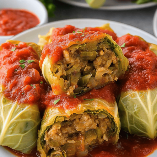 These cabbage rolls are so hearty and flavorful, they really don’t need much, but I always love a few classic pairings that make the meal feel complete. For a traditional breakfast or brunch, they are surprisingly good alongside some scrambled eggs or a simple slice of toast. The savory notes of the rolls are a nice contrast to the richness of the eggs. For a more substantial brunch, I like to serve them with a side of roasted potatoes or some crusty bread for soaking up any extra sauce. As a dessert course, well, these aren’t a dessert, but if you’re looking for something to follow them, a simple Fruit Salad or a light, creamy panna cotta is always a hit. For those cozy snack moments, a bowl of these cabbage rolls is pure comfort. My absolute favorite way to serve them is with a dollop of sour cream or a sprinkle of fresh dill. It adds a lovely tangy creaminess that cuts through the richness of the tomato sauce. Sometimes, we’ll have them with a side of mashed potatoes, especially if the kids are extra hungry, because who doesn’t love potatoes?
