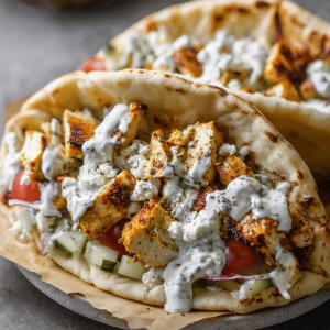 In just a few smart steps, you’ll have juicy, well-seasoned chicken ready to nestle into warm pita with all the crisp, refreshing toppings. Start by whisking a bright dry rub, then mix a lemony marinade with yogurt to help tenderize and flavor the chicken. Let the meat soak briefly, then cook it quickly on a hot skillet or grill until it’s blistered and tender. While it rests, you’ll prep the crunchy vegetables and whip up a creamy tzatziki. Assemble with a smear of tzatziki on the pita, add the chicken, top with veggies, drizzle a little lemony glaze if you like, and finish with feta and herbs. It’s fast, it’s flavorful, and it feels like a mini Mediterranean feast every time you bite in.