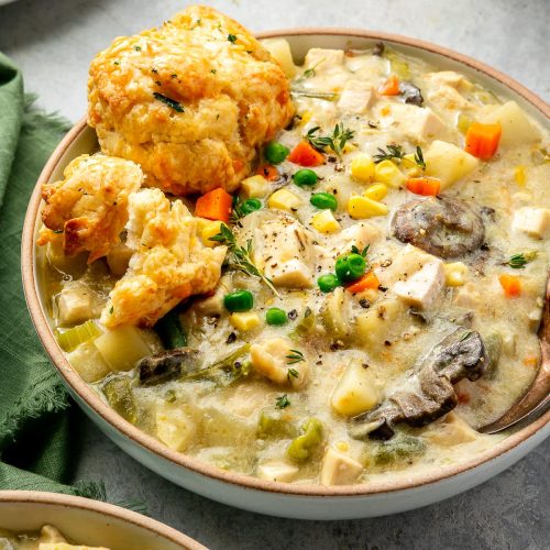 No baking necessary here, thankfully! The “baking” magic happens on the stove. If you want a crusty topping, go for my crumbly biscuit or puff pastry bites on the side, but the soup alone is pure comfort.