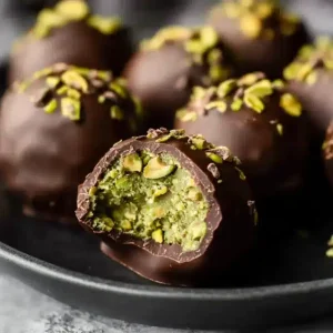- Roll the pistachio paste into small balls, about 1 inch in diameter. Place them on a parchment-lined baking sheet and freeze for at least 30 minutes.