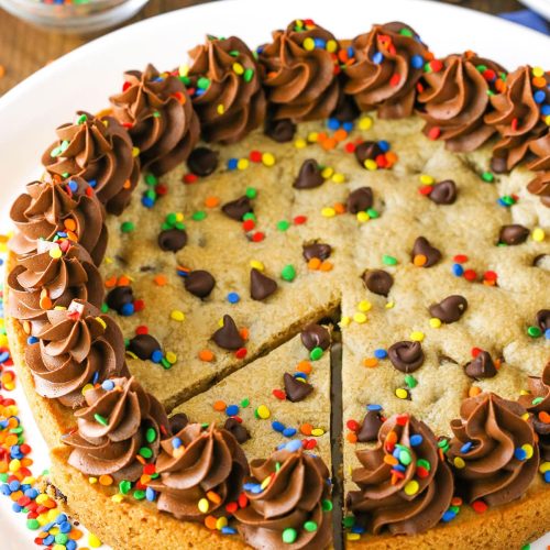 This cookie cake is best enjoyed within 4-5 days. Without the buttercream, it can be stored at room temperature; with buttercream, refrigerate after 24 hours.