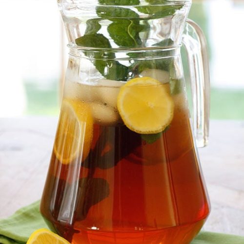 For Brunch: Serve iced tea in a big glass pitcher with fresh mint and lemon slices floating on top — it looks so pretty! It goes well with lighter fare like avocado toast, quiche, or fresh salads with vinaigrette.