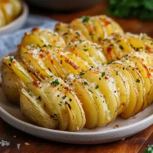 Slice your potatoes if you’re feeding a crowd, or simply spoon them onto a warm serving dish. The potatoes should be crisp on the outside, but still tender inside, with garlic notes that linger pleasantly. A final sprinkle of flaky sea salt right before serving makes a world of difference. These Garlic Butter Potatoes are sensational with roasted chicken, grilled salmon, or roasted vegetables. They’re also perfect as a comforting, stand-alone dish with a simple green salad on the side.