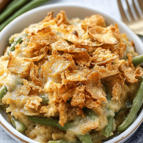 green bean casserole final dish beautifully presented and ready to serve