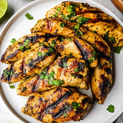 - Serve the grilled mango lime chicken topped with fresh cilantro and lime wedges.