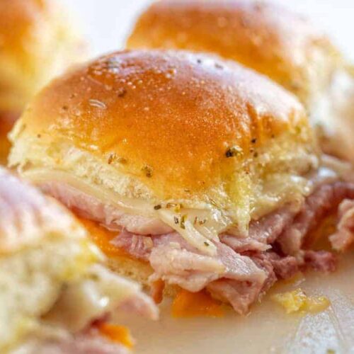 These Ham and Cheese Sliders are one of the BEST you will ever try. The secret? The seasonings in the butter sauce! They transform boring ham and cheese into something magical!
