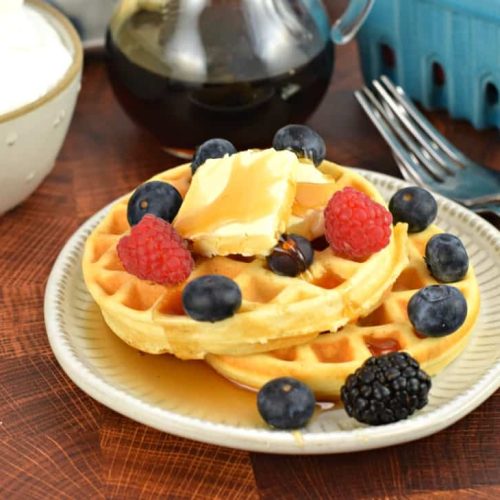 Room Temperature: If you have a few waffles you’re not finishing, stack them in a breathable container with a clean tea towel between layers. They’ll stay tender for up to a day, but they’re best when warmed, so plan to reheat soon after baking.