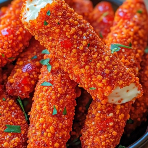 Hot Cheeto Mozzarella Sticks are the kind of thing that feels special without being fussy. They’re a crowd-pleasing, family-friendly snack that also has a little rebel in it—the kind of dish that makes you grin when you pull the tray from the oven and hear that satisfying crackle. I’ve served them at casual get-togethers, after-school hangouts, and even as a playful party starter that gets a chorus of “wow!” from friends who weren’t expecting a little bite of spicy nostalgia. If you’ve got the courage to turn up the heat and the patience to let that cheese stretch, you’ll be hooked. I’d love to hear how yours turn out—did you go extra crispy, or did you skip the glaze and dip straight into marinara? Either way, this recipe invites you to gather around the counter, share stories, and snack with intention. Happy baking, friends, and may your cheese pull be gloriously long. Tell me in the comments what twist you tried or what sauce you loved most. Can’t wait to hear how yours turns out!