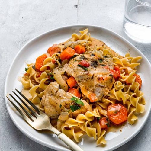 - Divide cooked egg noodles among plates and place chicken on top.
