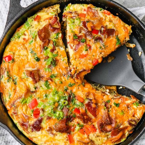 There’s no real “swirling” in the traditional sense for this frittata, but the layering is key! After you’ve poured the egg mixture over the sautéed veggies and sprinkled the cheese on top in Step 4, you want to ensure the cheese is distributed somewhat evenly. The eggs will naturally create a beautiful, slightly uneven surface as they cook and set. The goal is to have the ingredients mixed throughout the egg base, creating pockets of flavor and texture rather than distinct layers. Once it’s in the oven, the eggs will puff up slightly and cook evenly, making it look like a beautifully cohesive dish ready to be sliced.