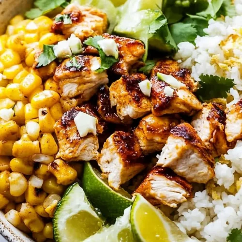 So there you have it – my absolute favorite Mexican Street Corn Chicken Bowl! I truly hope you give this recipe a try. It’s more than just a meal; it’s a whole experience. It’s the kind of dish that brings people together, sparks conversation, and leaves everyone feeling happy and satisfied. I’ve shared my personal tips and tricks, the little lessons learned from my kitchen adventures, all to help you make this bowl just as perfect as it is in my home. It’s proof that you don’t need to spend hours in the kitchen to create something truly spectacular and flavorful. If you love vibrant flavors, comforting textures, and meals that are both wholesome and exciting, this Mexican Street Corn Chicken Bowl is absolutely for you. I can’t wait to hear how yours turns out! Please leave a comment below with your thoughts, any variations you tried, or any questions you might have. Your feedback means the world to me!