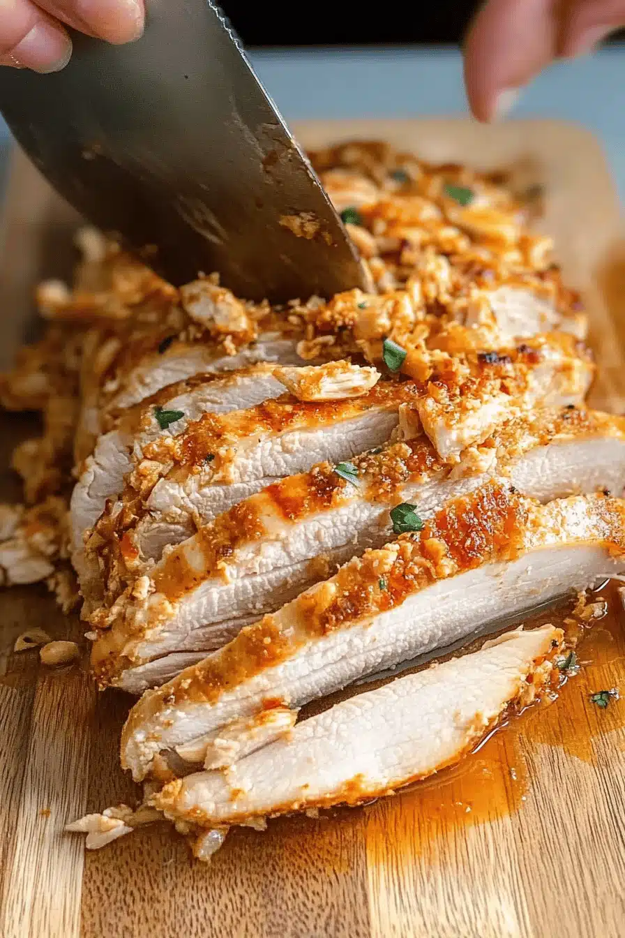 Chicken Prep:Slice chicken thinly against the grain for the most tender results. How do you slice chicken thinly?