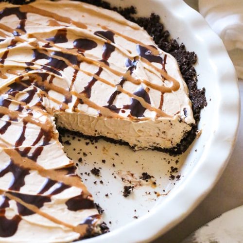 When you’re ready to serve, carefully remove the sides of the springform pan if you used one, or simply slice directly from the pie plate. I find a sharp knife dipped in hot water and wiped dry between slices makes for cleaner cuts. Serve chilled and enjoy the pure, unadulterated joy of this incredible no-bake peanut butter pie!
