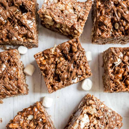 Ingredient Swaps: If you’re dairy-free, use a plant-based butter and dairy-free marshmallows (check labels). For a nuttier kick, add 1–2 tablespoons chopped roasted hazelnuts into the filling. If you’re gluten-free, ensure you’re using gluten-free Rice Krispies and check all labels for any added barley malt or malt flavoring.