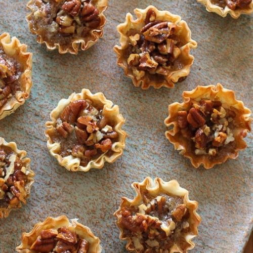 - Arrange mini shells on a baking sheet. Fill mini shells with one heaping teaspoon of pecan mixture. If any of the mixture remains, distribute evenly between all the shells.