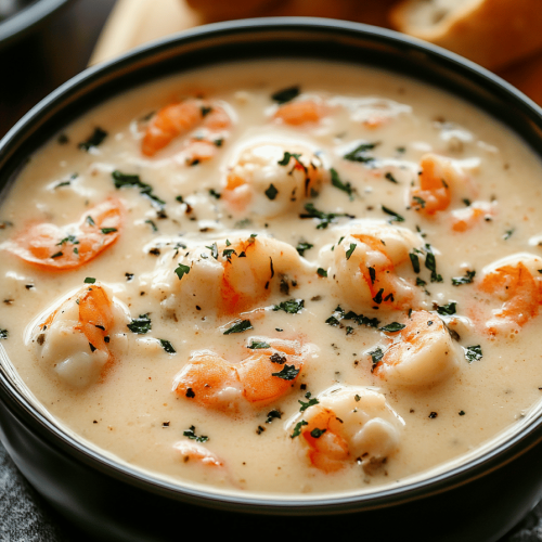 So, there you have it – my family’s cherished Seafood Chowder recipe. It’s more than just a soup; it’s a bowlful of comfort, flavor, and memories. The creamy texture, the smoky bacon, and the tender seafood create a symphony of flavors that will warm you from the inside out. Whether you’re looking for a quick weeknight dinner or a comforting meal on a chilly day, this recipe is sure to satisfy. If you enjoy this recipe, you might also like my creamy tomato soup or hearty Beef Stew. Both are family favorites! I hope you love it as much as we do. Happy cooking, and I can’t wait to hear how yours turns out! Feel free to leave a comment below with your own variations and tips. And don’t forget to rate the recipe if you enjoyed it! I’d love to see your creations, so share a photo on social media and tag me!