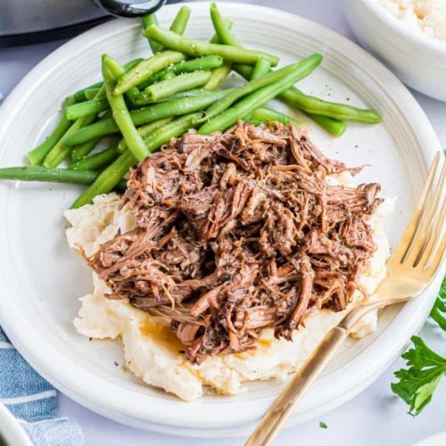 Cover the slow cooker and cook on LOW for 8-10 hours, or on HIGH for 4-5 hours. The exact time will depend on your slow cooker and the size of your roast. The goal is for the beef to be fork-tender and easily shreddable. I usually put mine on when I wake up, and it’s ready by dinnertime. It’s so hands-off, it’s almost unbelievable.