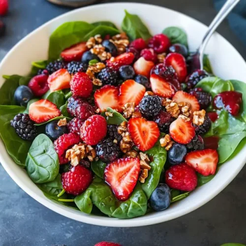 What are some of the reasons why I love this berry spinach salad?flavor is just out of this world. You get the slight peppery bite of the spinach, which is beautifully balanced by the natural sweetness and tang of the berries. Then there’s the crunch from something like toasted almonds or pecans, and often a bit of creamy cheese like goat cheese or feta, which adds this incredible savory depth. It’s a symphony of textures and tastes that hits all the right notes. And let’s talk about simplicity. This is a lifesaver on busy weeknights or when you’re entertaining and want to spend more time with your guests than in the kitchen. Most of the ingredients are ready to go, and the dressing usually comes together in under five minutes. It’s a recipe that genuinely makes you feel like a culinary rockstar without the fuss. Plus, it’s surprisingly cost-efficient, especially when berries are in season! You can often find great deals, and spinach is usually pretty affordable. It feels decadent but doesn’t break the bank. What really sets it apart, though, is its versatility. I’ll get into this more later, but you can swap out berries, nuts, cheeses, and even add grilled chicken or shrimp to make it a complete meal. It’s a salad that adapts to your mood and what you have on hand, making it a true kitchen hero. It’s a far more exciting option than, say, a plain Chicken Caesar salad, offering a burst of freshness that just can’t be matched.