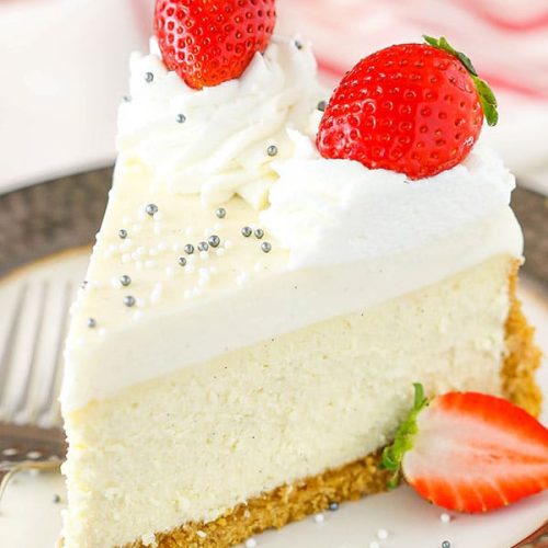 To get those perfect, clean slices, use a sharp knife that has been dipped in hot water and wiped dry between each cut. Slice the chilled cheesecake into wedges and serve. It’s absolutely divine on its own, but a little fresh berry garnish is always a lovely touch. Enjoy!