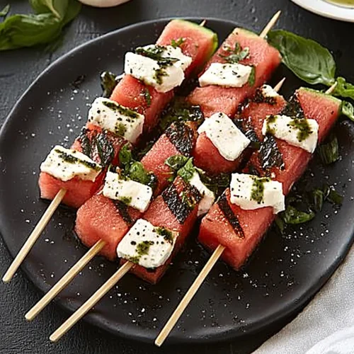 Okay, so I’ve made these Watermelon Feta Skewers more times than I can count, and over the years, I’ve picked up a few tricks that I think really make a difference. First off, the watermelon is key. You want a ripe, sweet watermelon. Give it a good thump – if it sounds hollow, it’s usually a good sign! Avoid watermelons that have soft spots or feel overly heavy for their size, as they might be watery or bruised. For the feta, please, please, please buy the block feta packed in brine or oil, not the pre-crumbled stuff. The pre-crumbled feta tends to be drier and doesn’t have the same creamy, briny flavor. Plus, it crumbles too easily when you’re trying to cube it. I learned that the hard way early on! When you’re cubing both the watermelon and feta, try to get them as close to the same size as possible. This makes for a more visually appealing skewer and a balanced bite every time. Don’t be afraid to experiment with the herbs! While mint and basil are classics, I’ve also tried a little sprinkle of fresh dill, and it was surprisingly delicious, especially with a drizzle of lemon-infused olive oil. For the balsamic glaze, if you’re making your own, don’t let it get too thick; you want it to be pourable, not like taffy. If it does thicken too much, you can always stir in a tiny splash of water or balsamic vinegar to loosen it up. And for serving, presentation really does matter! Arrange them artfully on a nice platter, maybe with a few extra mint leaves scattered around. Trust me, these little details make them look extra special, even though they took hardly any time at all!